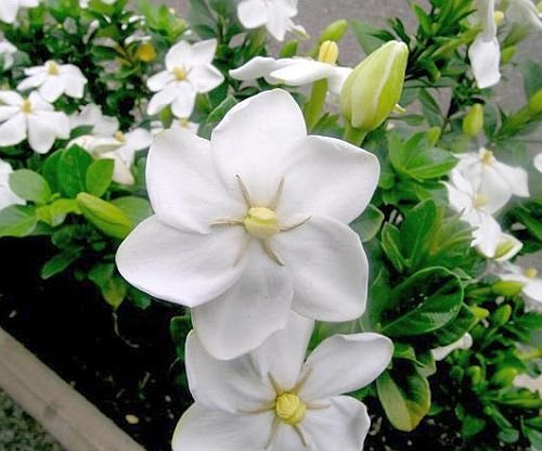 ?Gardenia thunbergia, also called white gardenia is an evergreen shrub or small tree, 2 to 5 m in height, with a smooth, whitish, usually straight main stem up to 250 to 300 mm in diameter, and short, rigid branchlets. The leaves are carried in whorls of 3 or 4 crowded near the ends of the branchlets. They are a glossy light green, hairless, softly to thinly leathery and conspicuously veined. The flowers of Gardenia thunbergia are large, showy, creamy white and heavily perfumed, particularly at night.