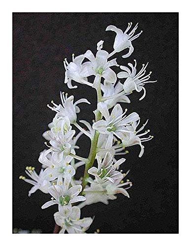 ?Lachenalia angelica is native to South Africa. It has a single hairy leaf and white campanulate flowers with green markings.
