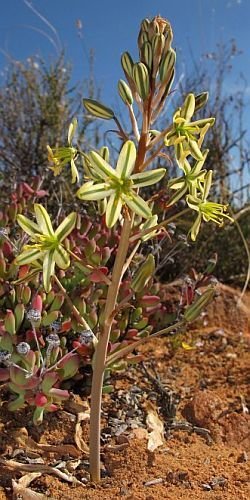 ?Ornithogalum secundum, known as African star flower or African star of Bethlehem is a bulbous plant growing 25 cm high. The bulb will grow 4 cm. The flowers are light yellow with a green stripe.