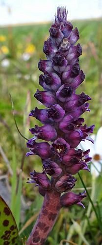 ?Lachenalia elegans var. suaveolens, a bulbous plant native to South Africa with blue to green flowers shading to pink and dark maroon markings.