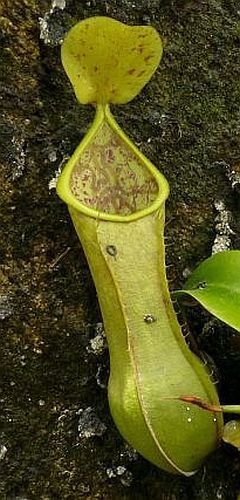 ?Nepenthes tobaica, a pitcher plant native to Sumatra. The pitchers are 20 cm high and 4 cm wide.