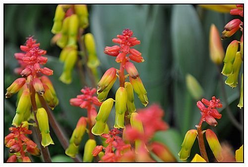 ?A mixture of Lachenalia species. Lachenalia are bulbous plants that are native to South Africa. They love a sunny spot and bring forth beautiful flowers in early summer.
