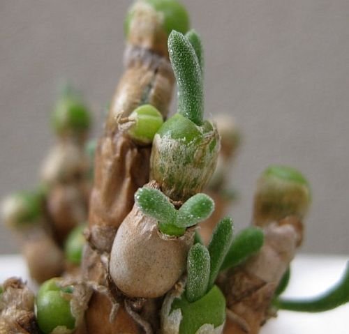 ?Monilaria pisiformis, also called string of pearls is an attractive succulent from South Africa. The flowers are white, yellow, violet or red.