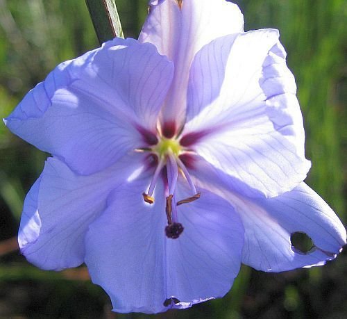 ?Aristea spiralis is native to South Africa. The flowers are showy, face to the side and are pale blue.