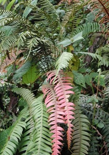 Blechnum fragile, an epiphytic fern from Central and South America, where it grows in rain or cloud forests. The long and pinnate leaves are bright red when they shoot.