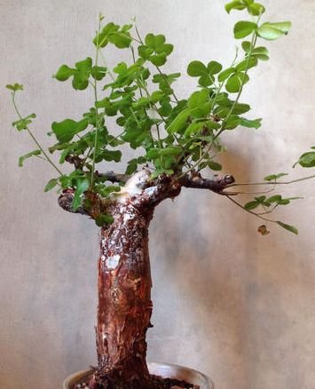 Commiphora edulis var boiviniana, a very rare caudiciform native to Kenya and East Africa, with 5-9 leaflets, at least the middle one with crenate-serrate margins.
