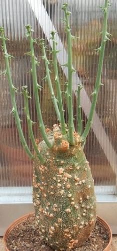 Adenia globosa, a very rare caudiciform native to Kenya, Somalia and Tanzania. The caudex can grow up to 1 m in diameter, and the vines can reach 2 m length. The flowers are greenish white.