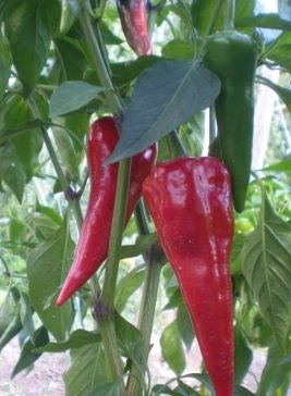 Chili Cyklon, a polish strain with a good amount of heat for cooking but not mouth burning. Green to red slightly curved peppers, perfect for making salsa.