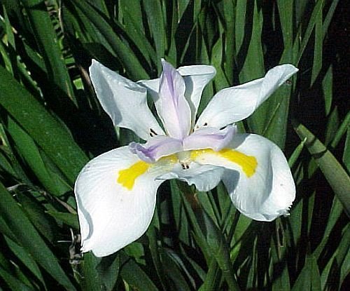 ?Dietes grandiflora, also called large wild iris is a perennial with evergreen leaves and large, attractive (10 cm) flowers. The name Dietes means having two relatives and refers to the relationship between this genus and Moraea and Iris. Grandiflora means large flower. The attractive flowers are large (about 100mm across) and are white with yellow nectar guides and outer tepals and violet central segments. The flowers are held on erect, slender stems which are about 1m in length. Dietes grandiflora is occasionally called the Fairy Iris because the fragile white petals not only look like fairy wings, but also have a tendency to disappear mysteriously overnight! This is a popular, easy-to-grow garden plant which will grow under most conditions. Dietes grandiflora is both frost and drought hardy and will grow in either sun or shade. However, for best results and most flowers, plant Dietes grandiflora in full sun or light shade in well composted, well drained soil and water well in summer.