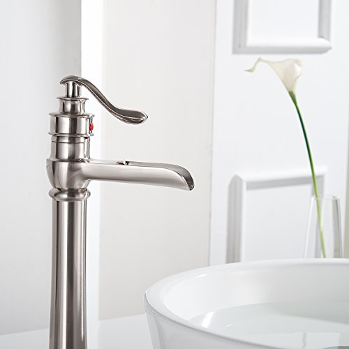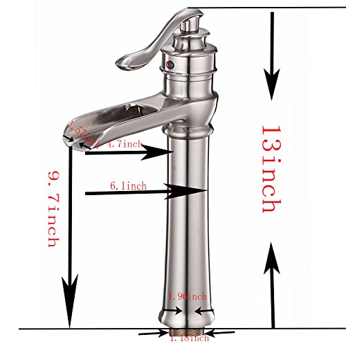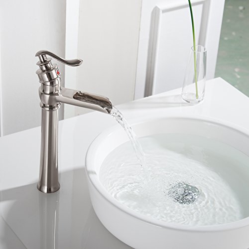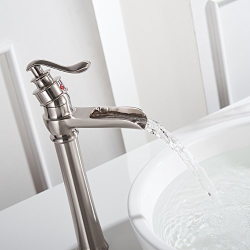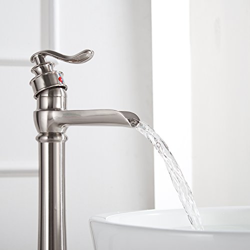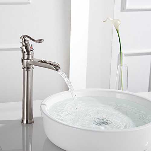 Eyekepperウォーターフォール浴室洗面シンク蛇口ニッケルブラシ仕上げシングルハンドル単穴船洗面Tallボディ 6135H-N