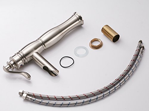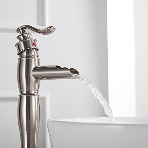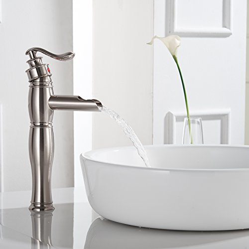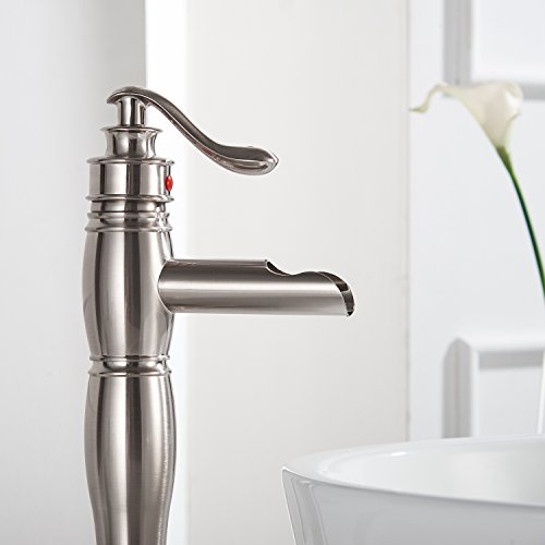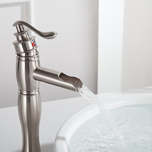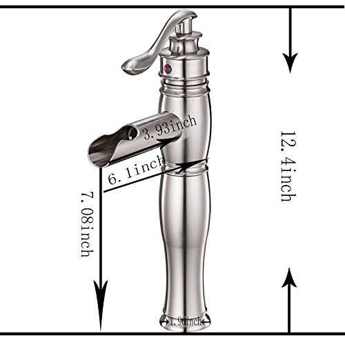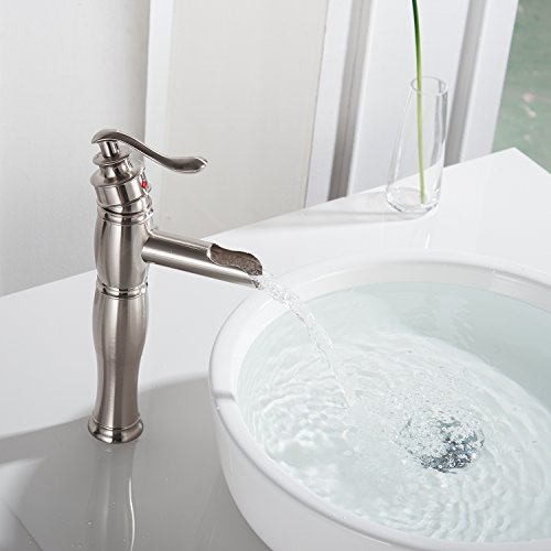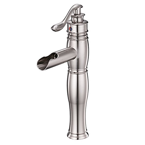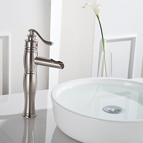 Aquafaucet ウォーターフォールシングルハンドル 洗面台 化粧シンク 浴槽浴室蛇口 トールミキサータップ ブラッシュドニッケル仕上げ 9197H-N