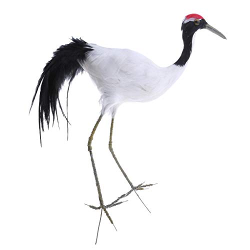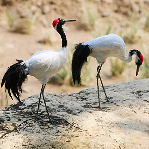 F Fityle 現実的 鳥 タンチョウ 置物 人工羽根 庭の装飾 芝生 屋外 動物モデル 全2色 生き生き 高品質 - 見上げる