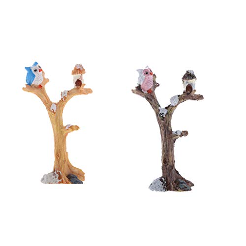 F Fityle ミニチュア フクロウ ブランチ 盆栽プランター 妖精 庭 装飾 贈り物 2個 可愛い 飾り