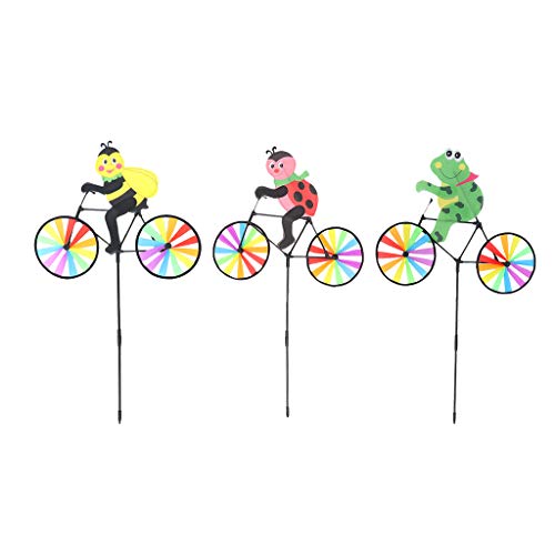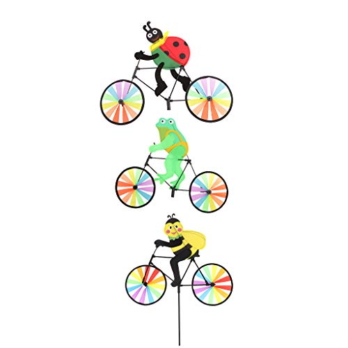 F Fityle 動物の自転車の風車 ウィンドバイク 可愛い カイト庭 芝生の飾り 3個
