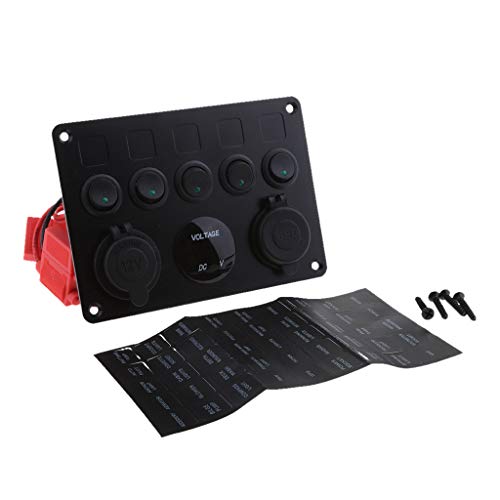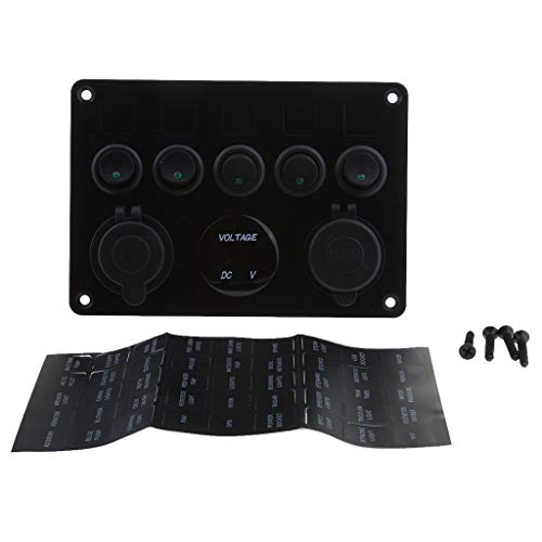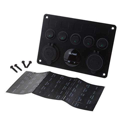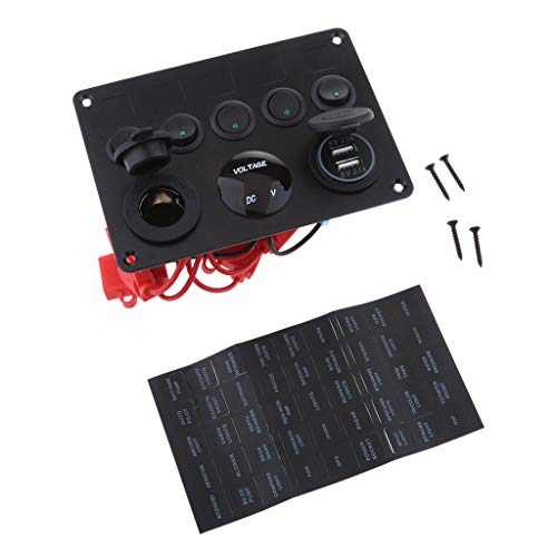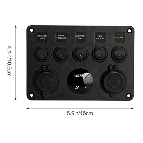 F Fityle ボート/自動車用 防水スイッチパネル デュアル USBポット LED電圧計付き ロッカーパネル