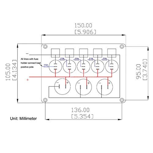 - 5緑色LEDトグルスイッチは、過負荷、過電流および短絡保護機能を備えています。