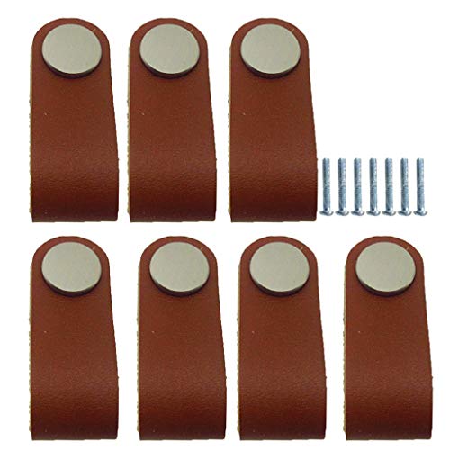 F Fityle モダン 手作り レザー スーツケース ハンドル 引き出し レザー ハンドル プルノブ 耐久性 - 褐色7本