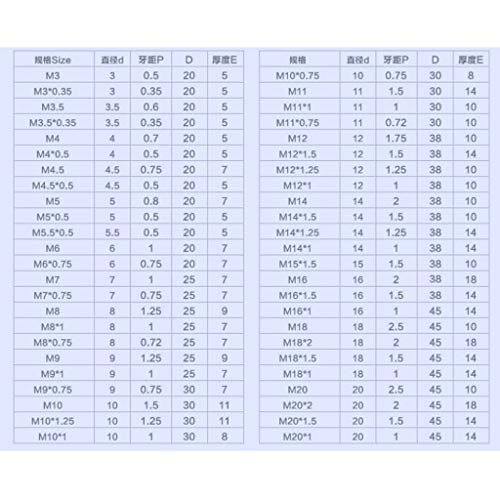 - M3×0.5 / M4×0.7 / M5×0.8