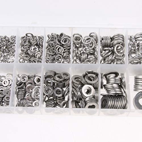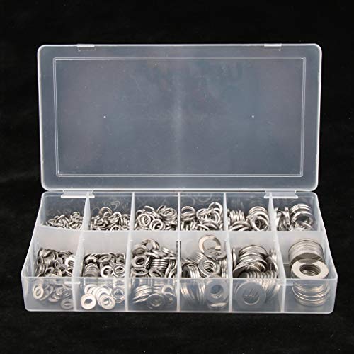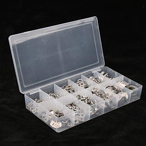 - フラットワッシャーとロックワッシャーの12個のコンモン使用サイズが含まれています。