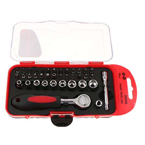 F Fityle 38点セット ラチェット ソケット ビット ハンドル 修理工具 スクリュードライバ