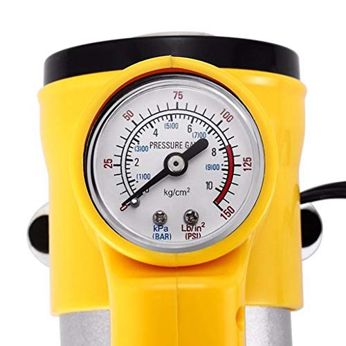 F Fityle 圧力計付き LEDタイヤインフレータ 車 ボール おもちゃ対応 コンパクト 超軽量 イエロー