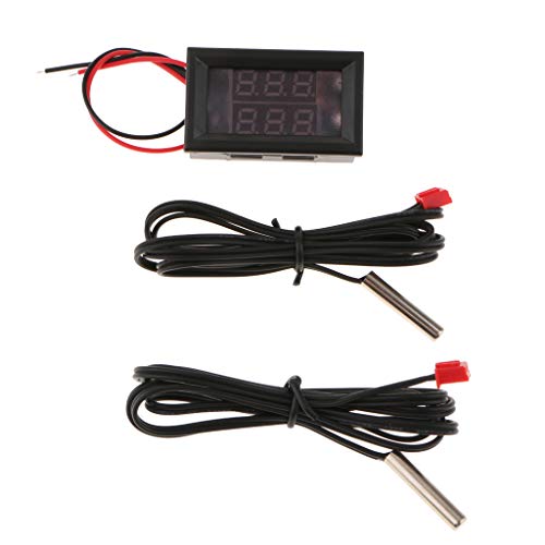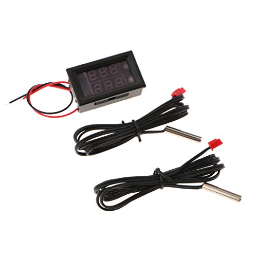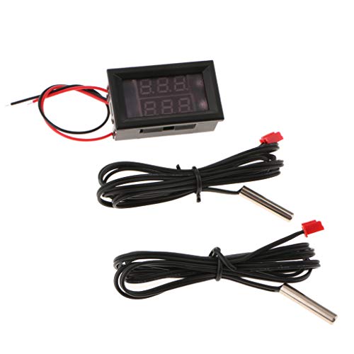 F Fityle デュアルディスプレイ 温度計 高精度 防水 NTC 金属プローブ 表示色:赤+青/赤+赤 - 赤+赤