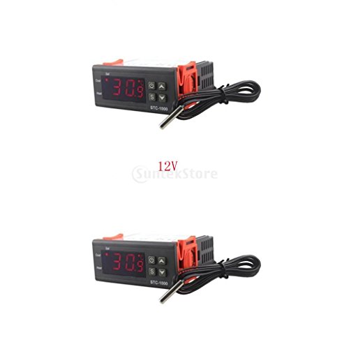 F Fityle 2個 STC-1000 AC/DC 12V / 10Aディジタル温度コントローラ サーモスタット+センサ