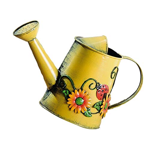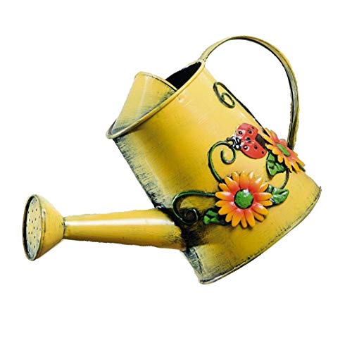 F Fityle じょうろ 散水缶 1.8L 水やり 園芸 インテリア 鉄製 ヴィンテージ イエロー