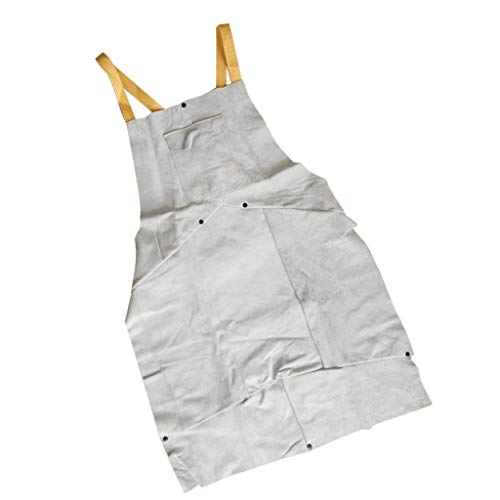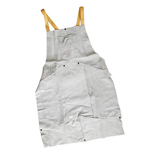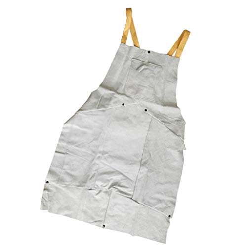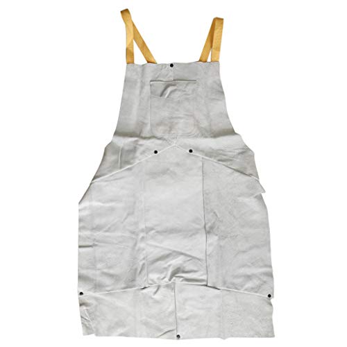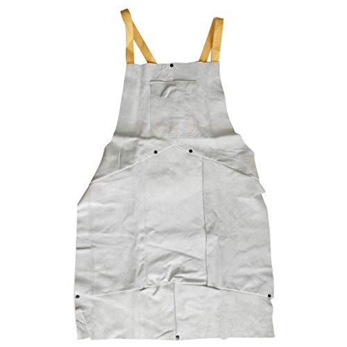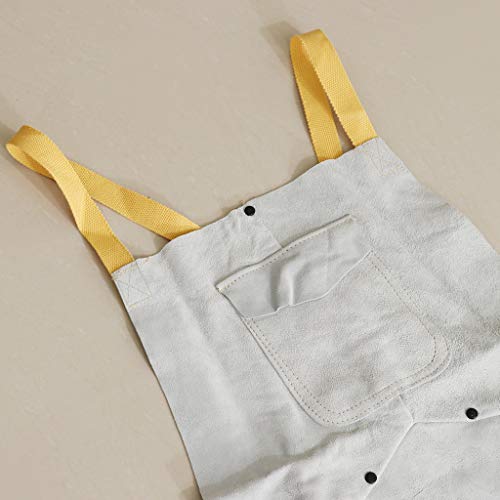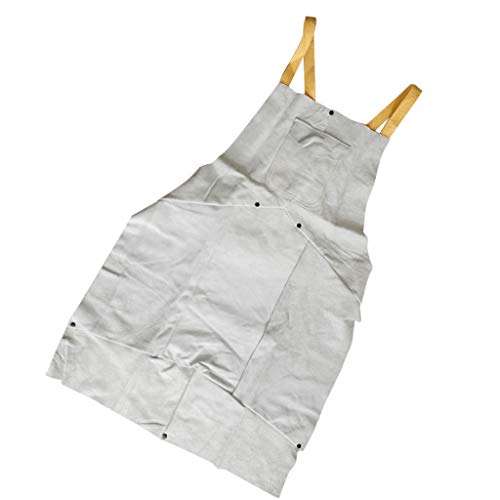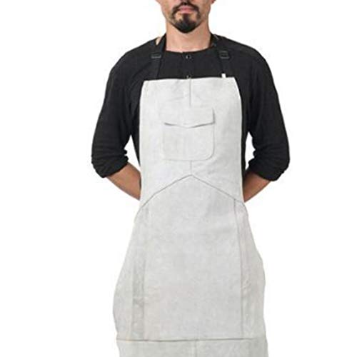 F Fityle 作業エプロン 溶接エプロン ポケット付き 耐火性 2層保護 レザー ホワイト