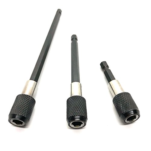 - 1/4インチ(6.35mm)六角軸の延長ビット、3サイズ(60mm、100mm、150mm)のセットです。