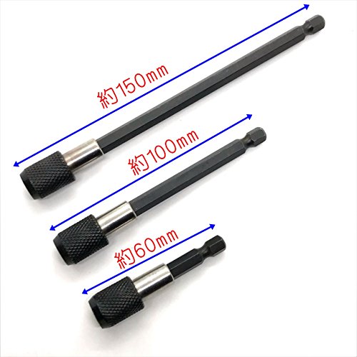 六角軸延長ビット 60mm 100mm 150mm 1/4 インチ 電動ドライバー 工具 延長 バー 3本 セット