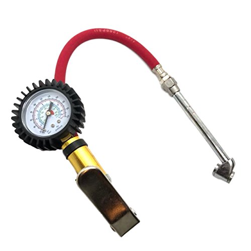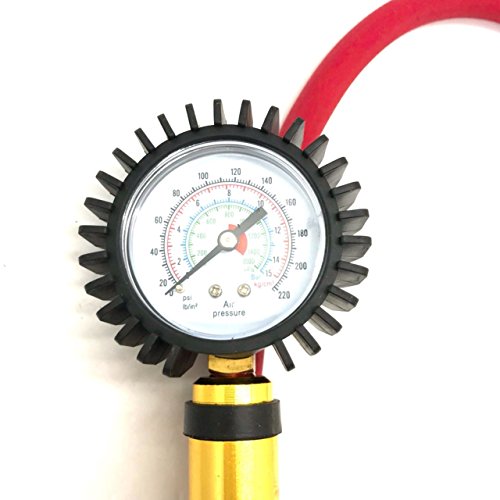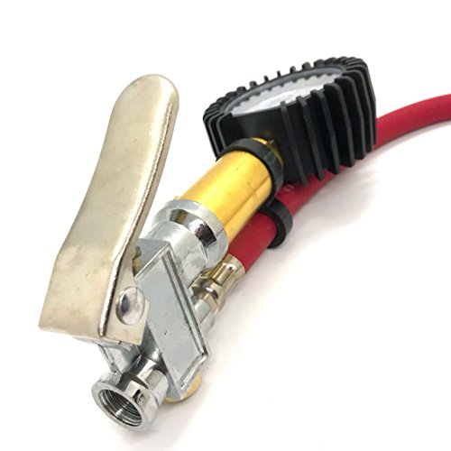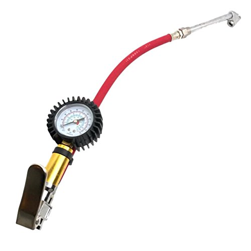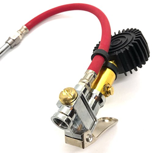 縦型 タイヤ ゲージ 付き エア チャック 空気入れ 減圧調整可能 自動車 バイク 用 (レッド)