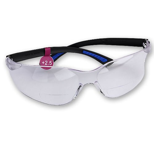 Comfortable design. Read small marks with ease with Fastcap's Magnifying Bifocal Safety Glasses. When 64ths seem to merge together on your rule but your vision is otherwise near normal, these bifocal magnifiers can improve accuracy dramatically. They provide uncorrected vision in the upper viewing field and correction for presbyopia (lacking ability to focus on nearby objects) in the reading section. Designed by a cabinetmaker with adjustable frames, anti-fog coated lenses and a range of bifocal powers, fit and comfort are assured. Feature shatterproof wrap around lenses with UV protection and reinforced temples. ANSI rated Z87.1.