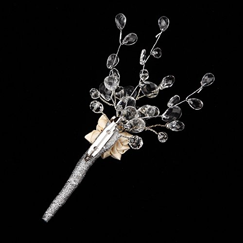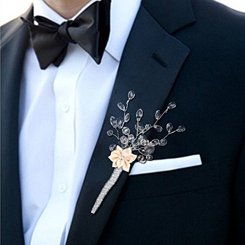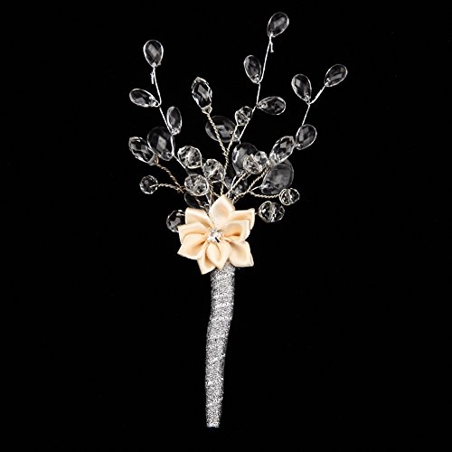 FAYBOXラグジュアリークリスタルビーズコサージュBestメンズグルーミングBoutonnieresウェディングプロムパーティー one size ベージュ