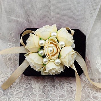 - 1つのコサージュに7つの小さなバラの花が含まれています。手首に縛るリボンはあらゆる人の手首にフィットします。