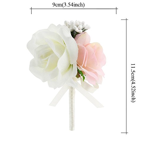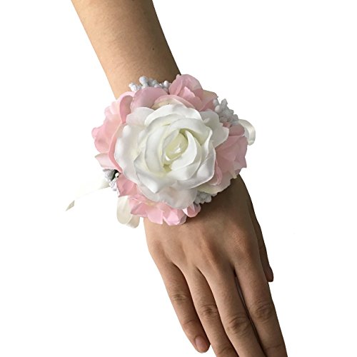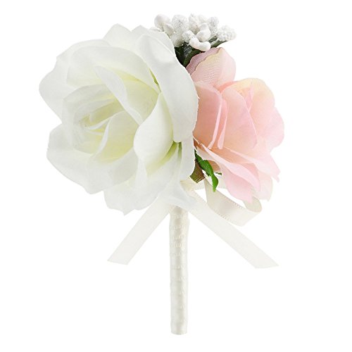 FAYBOXウェディングプロムアイボリーピンクシルクフラワー手首コサージュ結婚式花ピンブローチ SET60061IVY