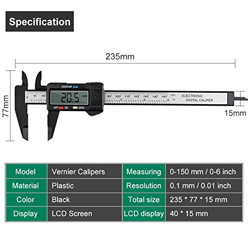 150mmデジタルノギス 0.1mm単位で精密計測 ミリメートル/インチ切替可 FMTDNO150