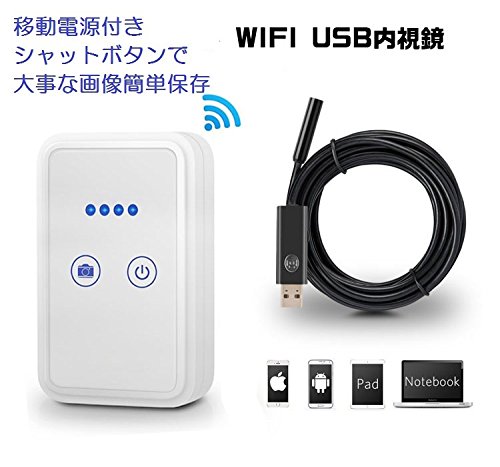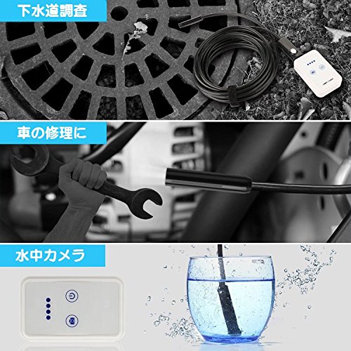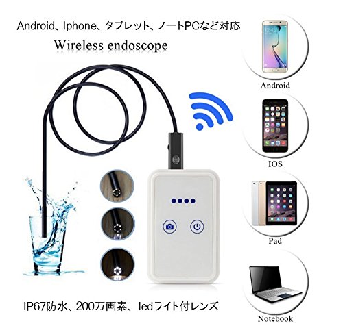 ワイヤレスエンドスコープ Wi-Fi接続式 iOS/PC/Android対応 フレキシブルスコープ LEDライト内蔵 本体充電式 チューブ長5m FMTWS801M