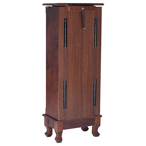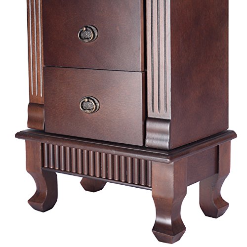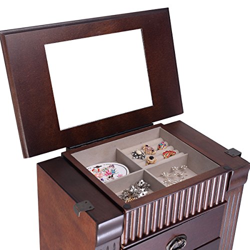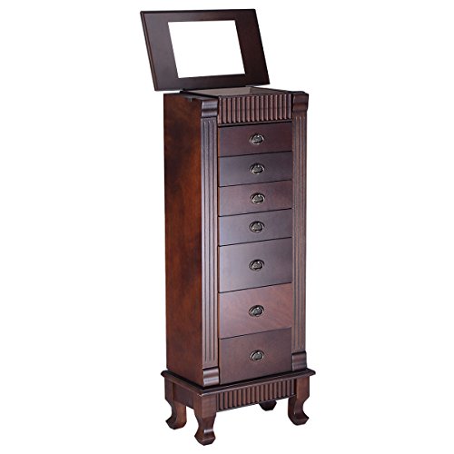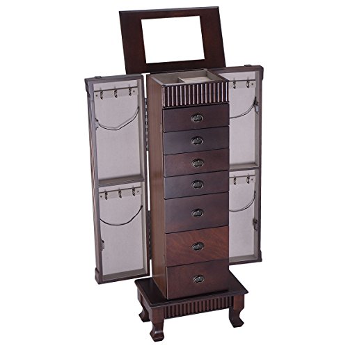 ミラートップ木製ジュエリーキャビネットアルモア個付きスタンドオーガナイザーボックスストレージW / 2 Sideドア& 7引き出し