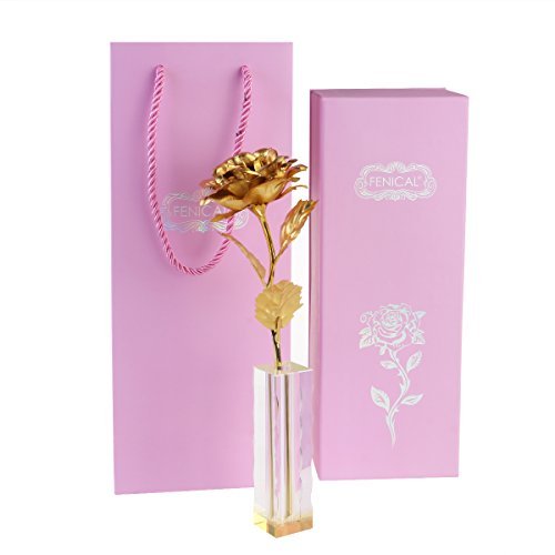 FENICAL 母の日ギフト24Kゴールド箔バラの花と透明花瓶 誕生日 バレンタイン 記念日の装飾に