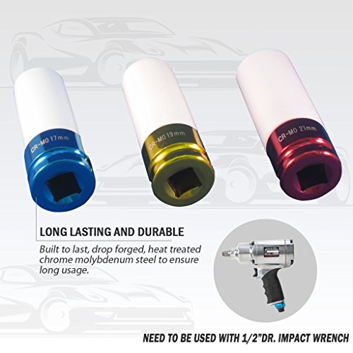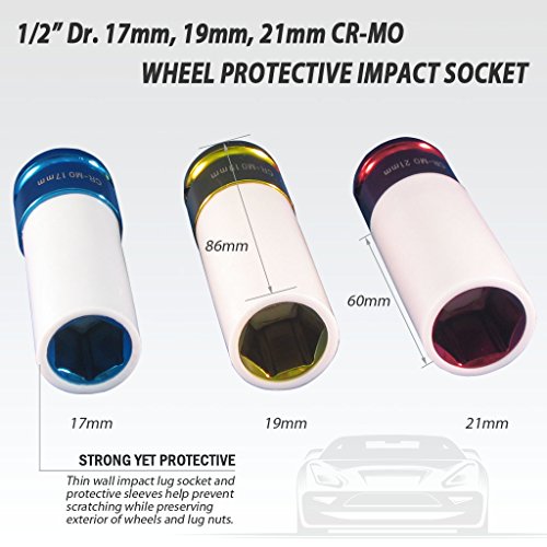 FIT TOOLS タイヤ保護スリーブ ソケット3セット(17mmブルー 19mmイエロー 21mmレッド)