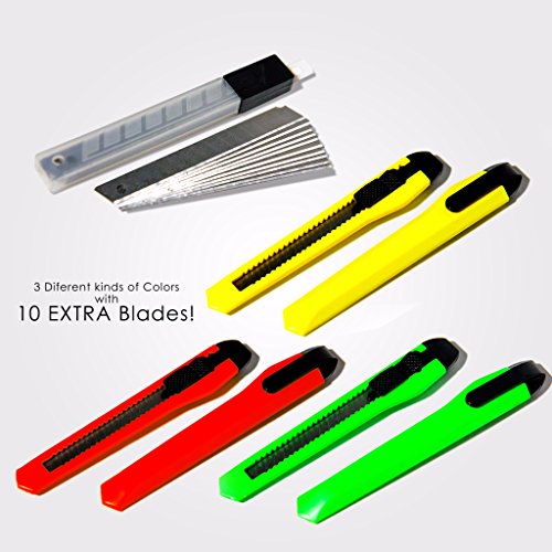 fixsonボックスカッターユーティリティナイフ( 6パック) Retractable Razor Blades Knifes with snap-bladeとスライドロック、10交換用ブレード含ま。(ビューアマゾン詳細ページ)