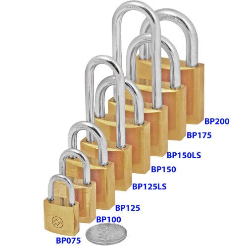 - Mountain Series (BP125ALS-51) Solid Brass Padlocks, 1-1/4 Wide Keyed Alike, 2-1/8 Long Shackle