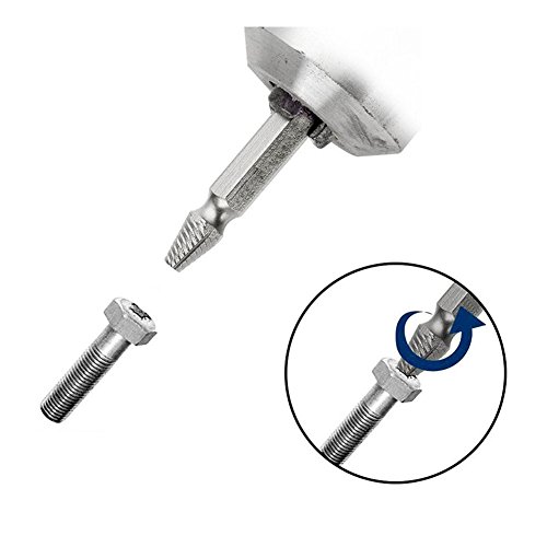 - 使い方:①折れたボルト、またはつぶれたネジ山の中心にドリル等で規定寸法の穴を開けます。。②ネジ頭の穴へに先端を入れ、電気ドリルを反時計回りの回転にして押し込むようにして回転させます(電動工具にも取り付けて使用できます)
