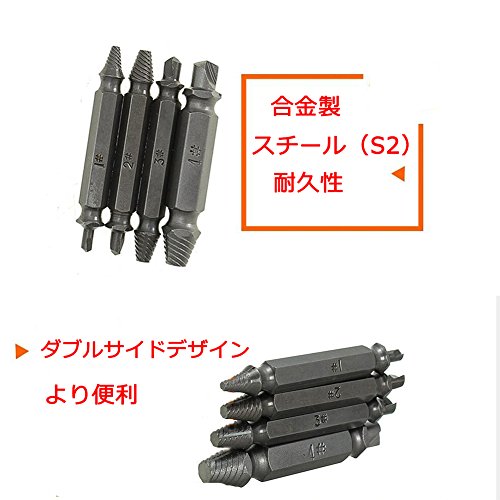 FKDLCD なめたネジはずしビット ネジ 外し エキストラクター ボルト抜く ネジ なめた 壊れたネジ 工具 ネジ抜き専用工具 修理用工具 4セット