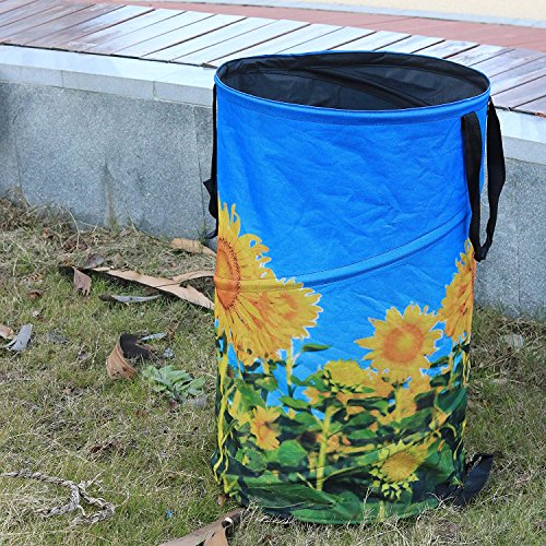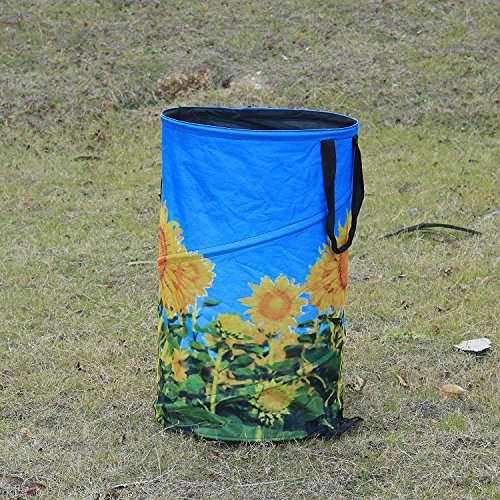 FLORA GUARD 120Lガーデンバッグ - 再利用可能なポップアップガーデニングバッグ、サンフラワープリント折りたたみ式キャンバスポータブルヤードゴミ袋