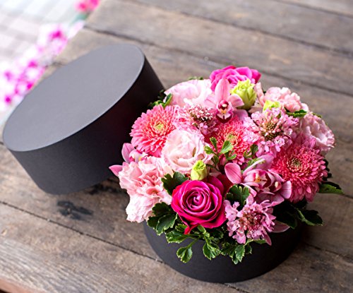 アレンジメントフラワー ギフト サプライズ BOX フラワー ラウンド型 ( ピンク 系 ) 生花