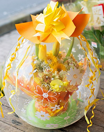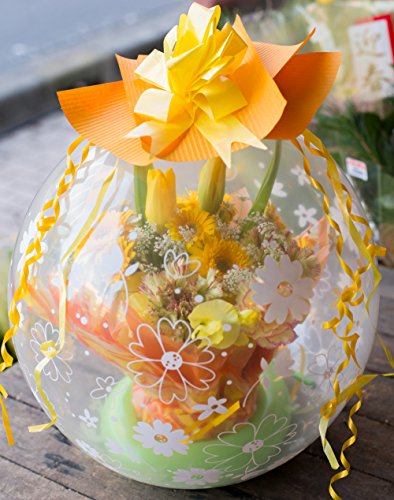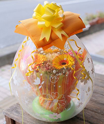 バルーンフラワー 花柄 イエロー オレンジ 系 ( 生花 が バルーン の中に入ったバルーン フラワー ) サプライズ ギフト