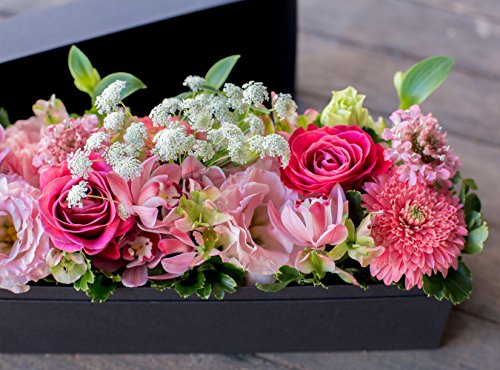 アレンジメントフラワー ギフト サプライズ BOX フラワー ワイド型 ( ピンク 系 )