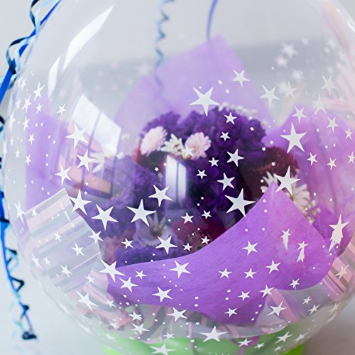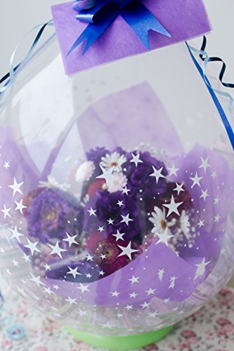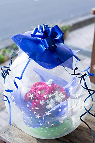 バルーンフラワー 星柄 ブルー パープル 系 ( 生花 が バルーン の中に入ったバルーン フラワー ) サプライズ ギフト
